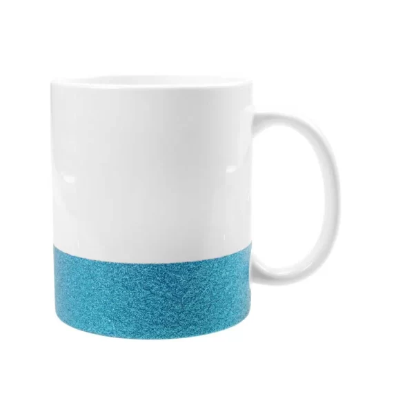 Caneca Branca com Tarja Glitter para Sublimação – Azul